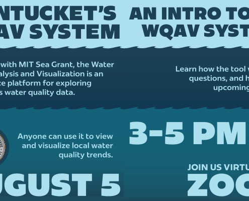 Join us on Tuesday, August 5, from 3:00 to 5:00 p.m. ET via Zoom for an introduction to the Town of Nantucket’s Water Quality Analysis & Visualization (WQAV) system—an open-source, public platform developed by the Nantucket Natural…