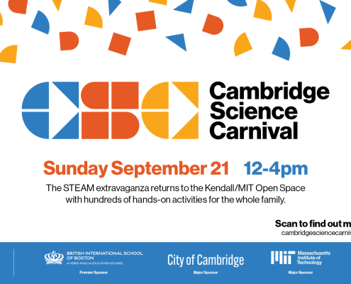 Join us on Sunday September 21 at the Kendall/MIT Open Space to celebrate our community together through STEAM. Cambridge Science Carnival is a gigantic yearly STEAM fair organized by the MIT Museum, with hundreds of activities, installations…